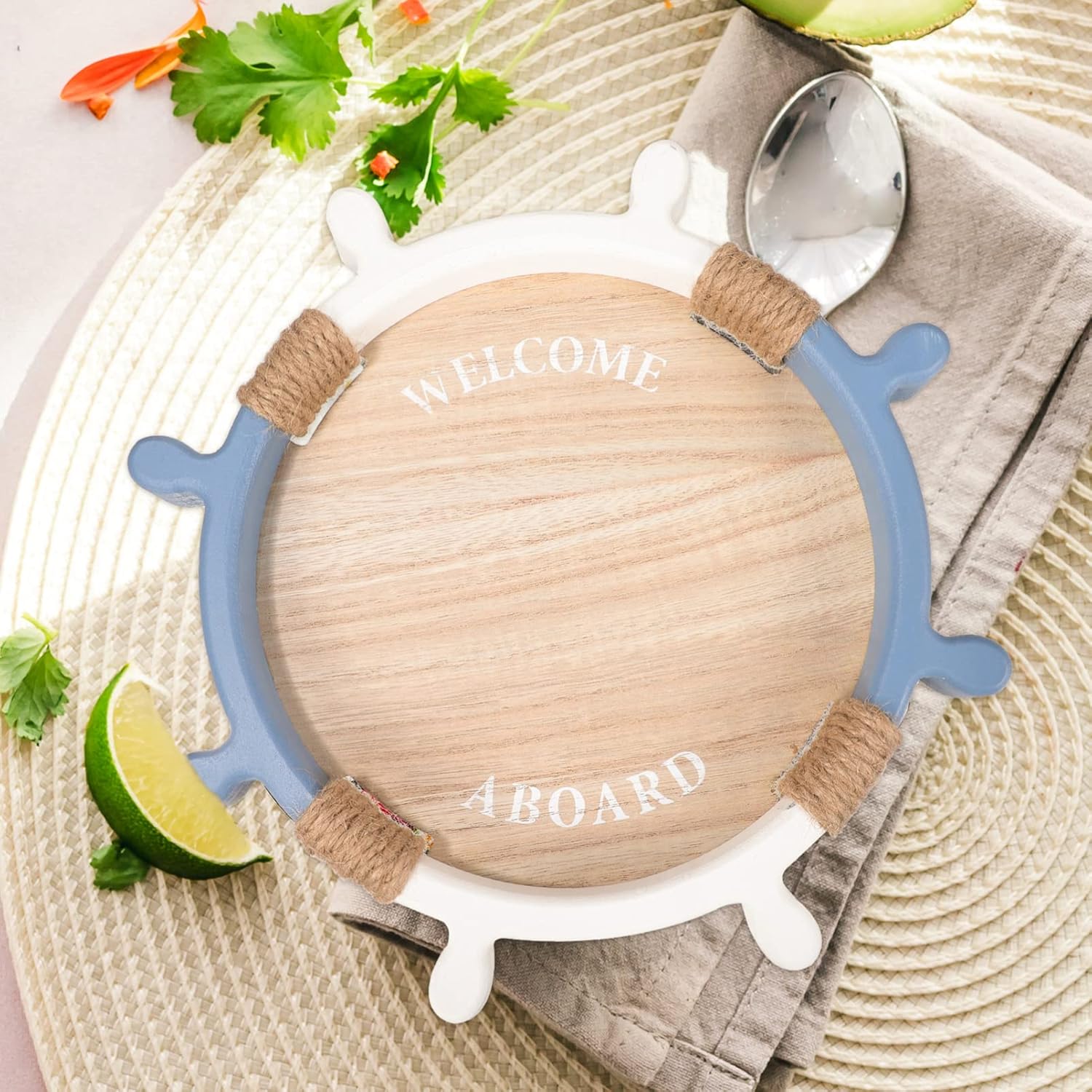 Bring a touch of coastal charm to your home with this nautical-inspired round tray. Perfect for serving, decoration, or as a centerpiece, it blends function with seaside style.