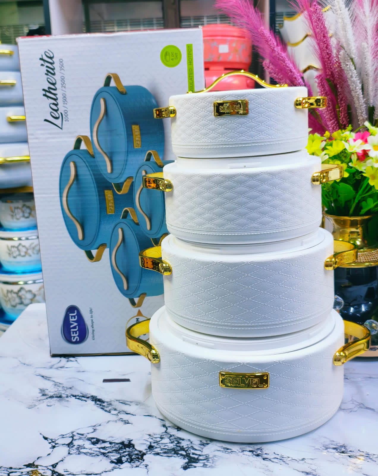 Bring sophistication to your dining table with this Leather Lite Insulated Hot Pot Set, designed to combine elegance, durability, and practicality. With a luxurious quilted leather-texture finish and gold handles, this set keeps your food warm while adding a touch of class to any occasion.