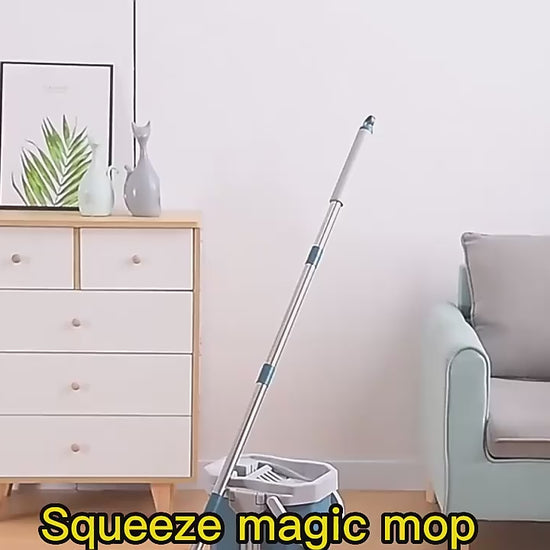 Say goodbye to messy cleaning with the Magic Squeeze Mop & Bucket Set. Featuring a smart hands-free squeezing system, this mop allows you to wash and dry without ever touching dirty water. The 360° swivel flat mop head easily reaches under furniture and into corners, while the super-absorbent microfiber pad lifts dust, dirt, and spills in seconds. Built with a sturdy stainless-steel handle and a durable bucket, this set is designed to make cleaning faster, easier, and truly effortless.
