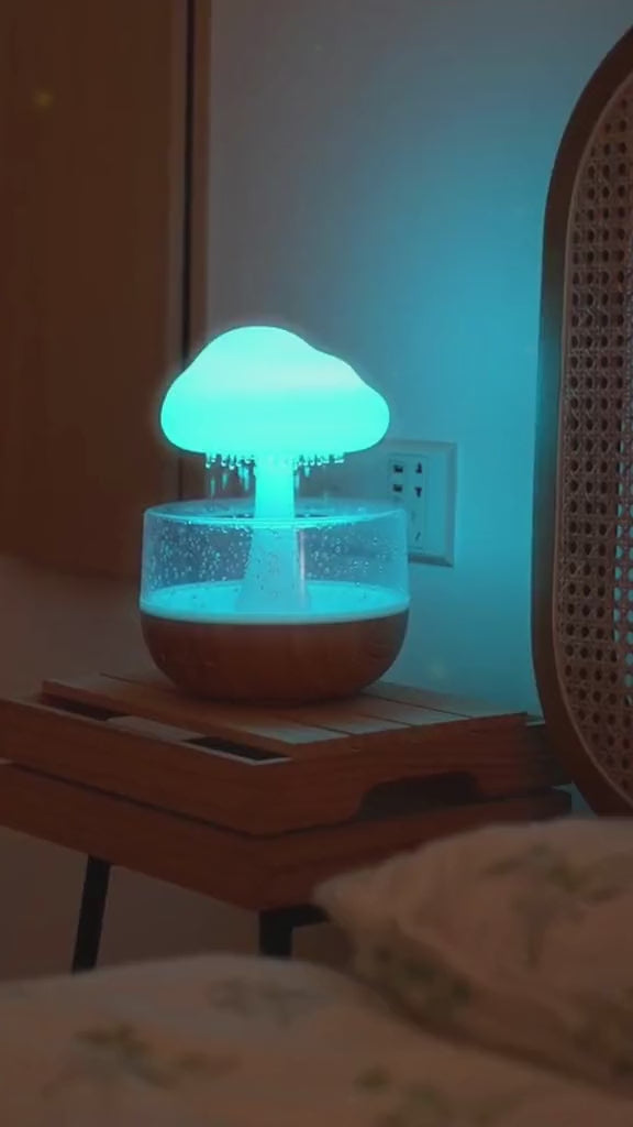 Bring a touch of calm and elegance to your space with this mushroom-shaped rain cloud humidifier. Designed for both style and function, it doubles as an aroma diffuser and a night light, creating the perfect relaxing atmosphere.